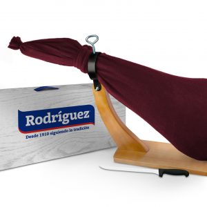 JAMON SERANO RESERVA RODRIGUEZ 7 KG CON SOPORTE Y CUCHILLO