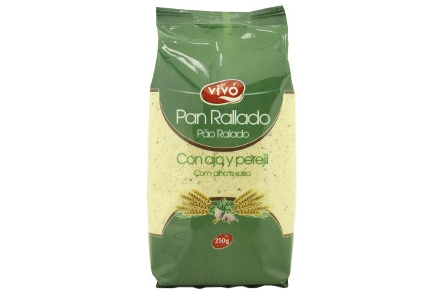 Pan rallado con ajo y perejil marca Vivo ideal para rebozar